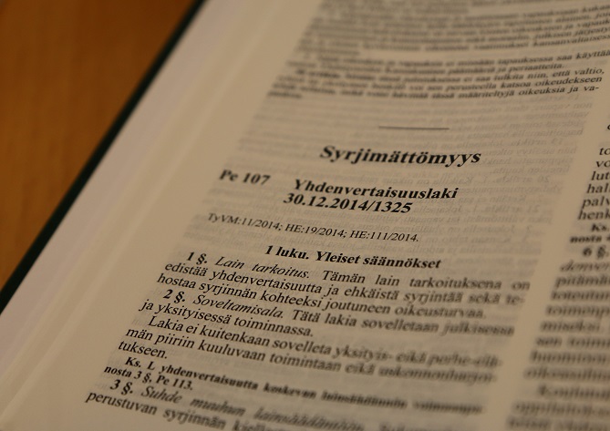 Likabehandling är ett viktigt värde i justitieministeriets verksamhet. Ministerier arbetar på flera olika sätt för att trygga denna grundläggande rättighet. Likabehandling betyder att alla människor är lika värda och att ingen får diskrimineras. Att dessa principer iakttas i det finska samhället garanteras i första hand genom diskrimineringslagen.
