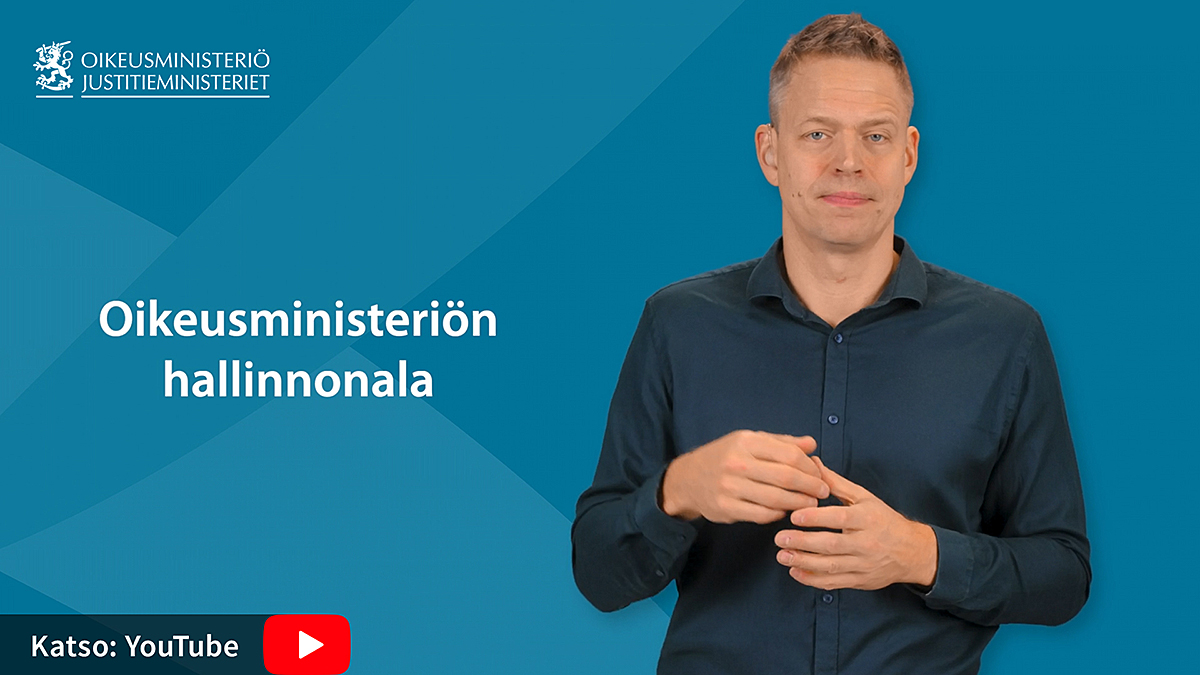 Tietoa oikeusministeriön hallinnonalasta suomalaisella viittomakielellä YouTubessa